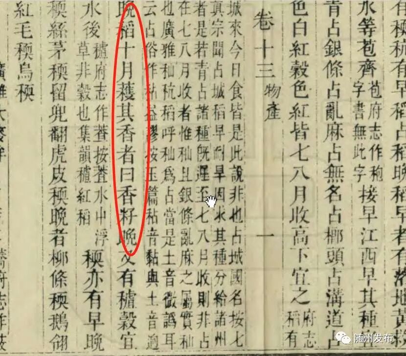 隨州悠久的種稻史,孕育了燦爛的米文化。清同治八年(1869)刻本《隨州志》卷十三記載:“稻早耐旱,因水其種,分給諸州……晚稻十月獲其香者曰香籽。”隨州自古有種稻的良好習慣、分給各地享用的奉獻精神。另據傳,隨州香稻歷朝歷代皆為朝廷貢米,其品質可見一斑。
